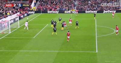 半场结束,曼联暂时客场1-0领先诺丁汉森林。