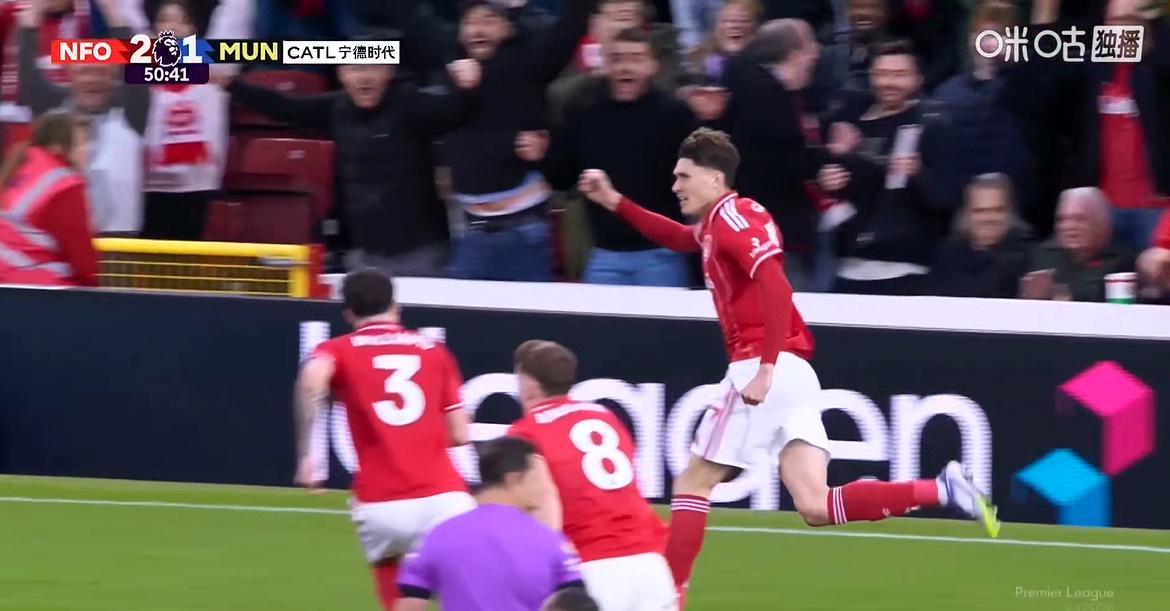 仅仅一分钟之后,森林攻势卷土重来,还是同样的套路,右侧送出传中,门前双方争顶形成乱战,混乱中森林后卫萨沃纳伸出一脚将球捅进曼联大门。短短两分钟连进两球,森林反超比分。