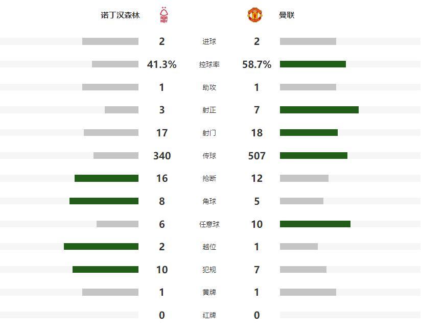 第61分钟,曼联差点扳平比分,B费的贴地斩被立柱弹出,卡塞米罗的补射稍稍偏出。不甘心被逆转的红魔在余下的时间大举压上围攻森林。第81分钟,阿玛德轰出一脚世界波,将全场比分定格为了2-2。