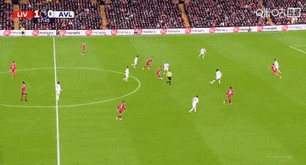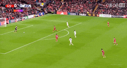 第一粒进球源于阿斯顿维拉门将马丁内斯的出球失误。萨拉赫抓住机会,面对空门果断起脚,展现了其自信与射门技术。这粒进球正是利物浦高压逼抢战术的成果,通过深度压制对手后场出球,迫使对方犯错。从比赛画面中可以清晰看到,利物浦的逼抢深度和强度较此前几轮有了显著提升。