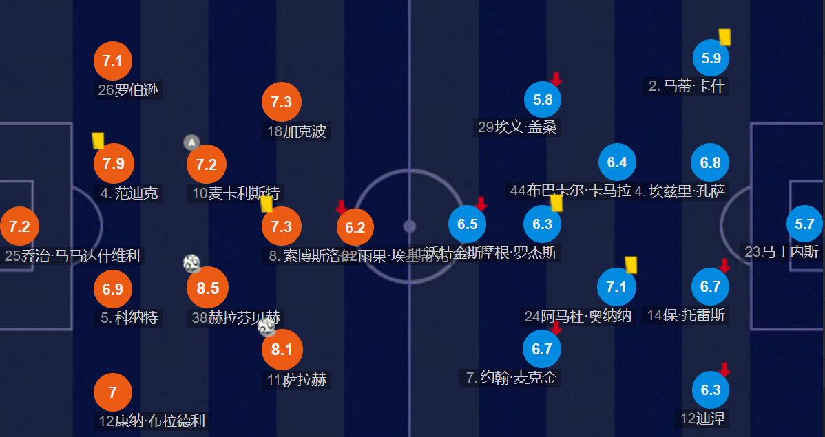 除了战术调整,索博斯洛伊的表现也值得称赞。他被安排在右边后卫、前腰、边中场等多个位置,任劳任怨且发挥出色。在球队失败时,他是为数不多获得正向评价的球员;如今球队重回正轨,他依然在发光发热。