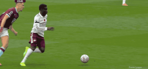 比分领先后,阿森纳继续施压。卡拉菲奥里甚至变身边锋插入禁区,一个简单的虚晃一枪就巧妙甩开了防守球员。然而,他的射门还是被沃克挡了一下,未能扩大比分。