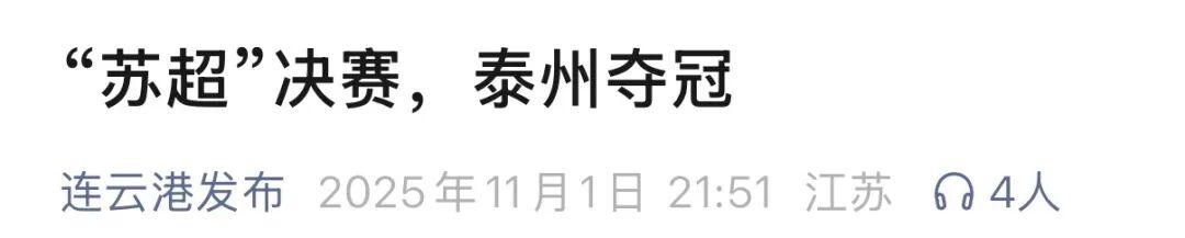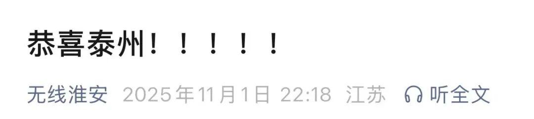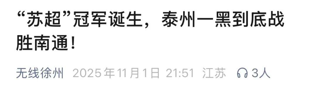 这场决赛不仅点燃了泰州、南通两地球迷的热情,更引发全省关注。苏州、常州、盐城等兄弟城市球迷纷纷通过社交媒体表达祝贺,直言:“这才是江苏足球该有的样子!”赛后,泰州队夺冠视频在短视频平台播放量突破千万,#泰州浪里球#、#苏超决赛#等话题登上热搜榜。