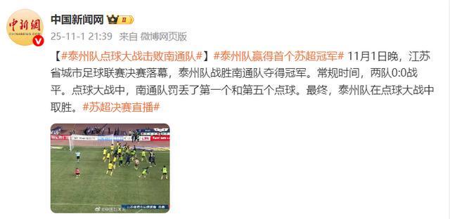 11月1日晚,江苏省城市足球联赛决赛在激烈角逐后落下帷幕。经过90分钟常规时间的鏖战,泰州队与南通队以0:0的比分握手言和,将冠军归属悬念延续至点球大战。最终,泰州队凭借稳定的罚球表现,以5:3的总比分战胜南通队,成功捧起本赛季江苏省城市足球联赛的冠军奖杯。