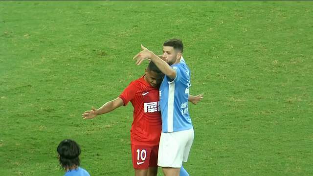 大连英博替补席可用的球员不多,下半场球员们明显跑不动了。比赛第60分钟,廖锦涛受伤,李国旭才做出了本场第一次换人调整,老将吕鹏披挂上阵。比赛第64分钟,梅州客家再次击中立柱,奥马尔松抓住机会补射扳回一球。这次的进攻中,梅州在门前完成了三连击,大连英博的球员全部愣在原地,比赛的节奏和主动权到了梅州客家的手中。
