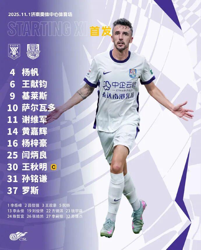 本场比赛,天津津门虎遭遇严重伤停困扰。中场主力哈达斯因累积黄牌停赛,阿代米、巴顿、石炎、郭皓等球员也因伤缺席。面对如此困境,津门虎主帅于根伟对阵容进行了大幅调整:门将闫炳良镇守球门,三名中卫王献钧、胡安·罗斯、黄嘉辉组成防线,杨梓豪和杨帆分居两侧,中场由王秋明、萨尔瓦多搭档双后腰,前场“三叉戟”则由孙铭谦、基莱斯和谢维军组成。