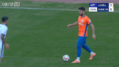 第24分钟,谢维军转身抽射打在顶网上,这是津门虎上半场唯一的一脚射门。第32分钟,津门虎由守转攻时被断球,泰山队就地发起进攻,谢文能突破杨梓豪后底线传中,泽卡在无人防守的情况下轻松头槌破门,比分变为2-0。