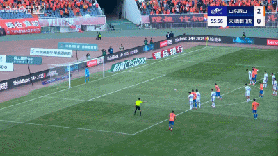 不过,在被罚下一人后,津门虎却马上收获进球。基莱斯在禁区内反复变线后,躲过对手三人包夹,起左脚施射完成破门,将比分改写为1-2。
