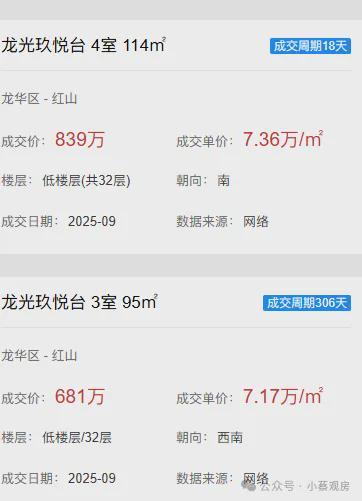 不过,红山片区品质次新房仍具一定抗跌性。龙光玖悦台作为龙华实验学区内品质标杆,除学区优势外,其品质在红山二手房中堪称顶尖,仅绿景1866可与之媲美。