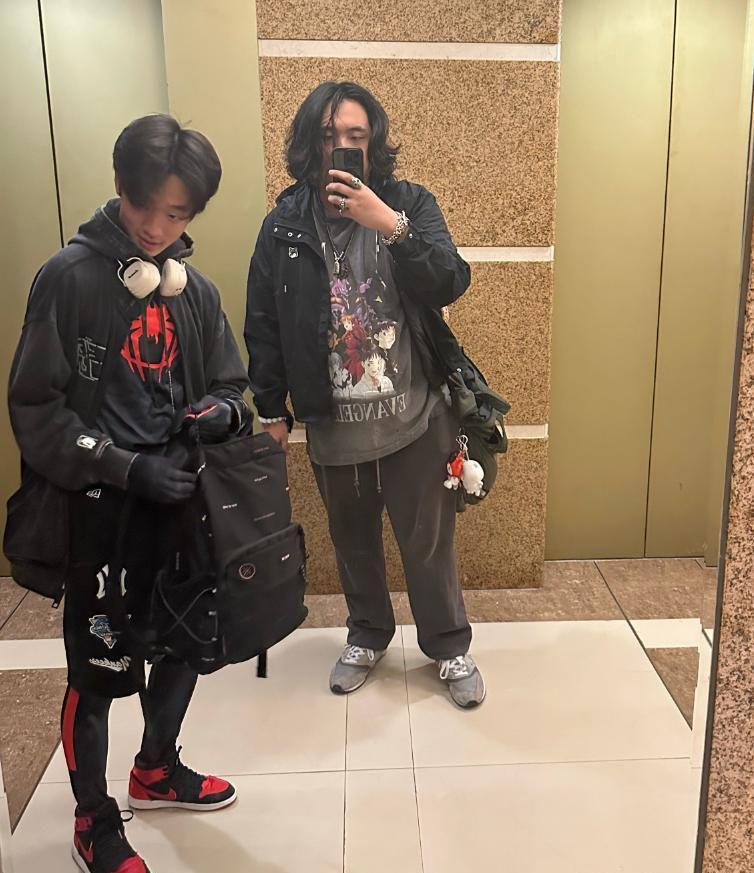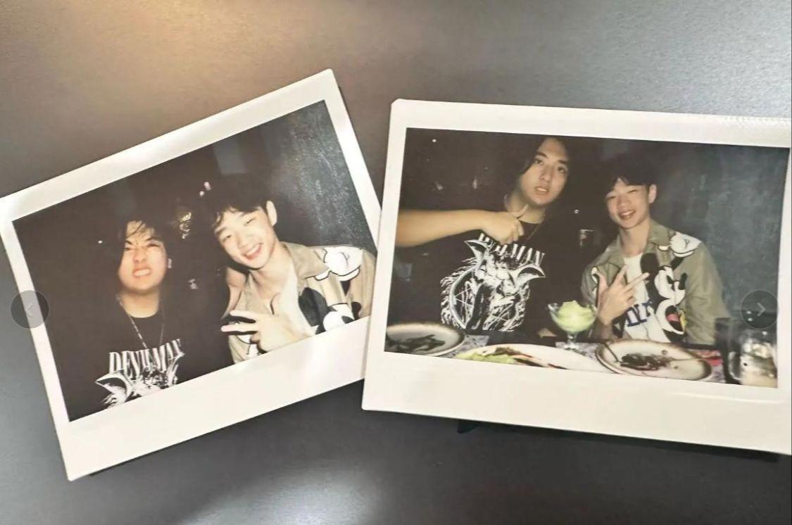 不过看到费曼和杨阳洋的同框合照时,我还是没忍住“噗嗤”一声笑出来——俩人站在一起的画风实在太反差了!杨阳洋穿着简单的白T恤和牛仔裤,身形清瘦挺拔,还是当年那个干干净净的学生模样;而站在他旁边的费曼,却像是换了个“画风”,肚子圆滚滚地凸出来,把外套都撑得有点紧绷,脸上也圆润了不少,看起来居然有了点“中年大叔”的既视感,跟当年节目里那个眉眼清秀、皮肤白皙的小男孩判若两人。他内搭一件灰色短袖,外面随便套了件深色夹克,头发也没精心打理,乱糟糟地贴在额头上,难怪有网友调侃:“费曼这是把生活费都省下来花在吃上面了吗?这圆润程度,一看就是个小吃货!”