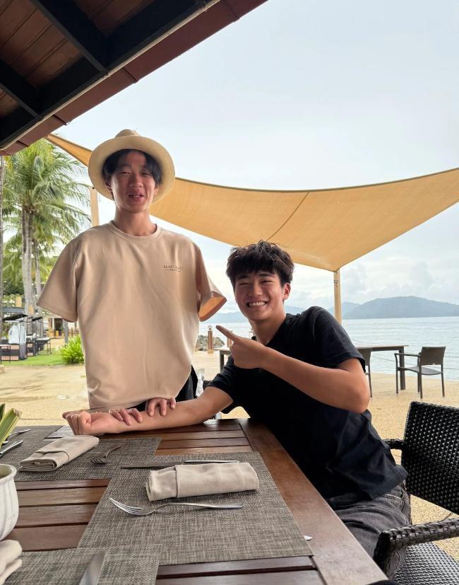 更绝的是,香港简直是《爸爸去哪儿》的“孩子聚集地”。除了土生土长的费曼,曹格的儿子Joe也在这儿读书。前段时间杨阳洋刚落地安顿好,行李还没收拾利索,就先跟Joe约了波“香港美食探索之旅”。两人从街头鱼蛋摊吃到巷尾烧腊店,手拉手逛遍商圈,聊起当年节目里的趣事,笑得前仰后合,完全没有多年未见的生疏感,仿佛昨天还在农家院里抢鸡腿、比谁吃得更快。
