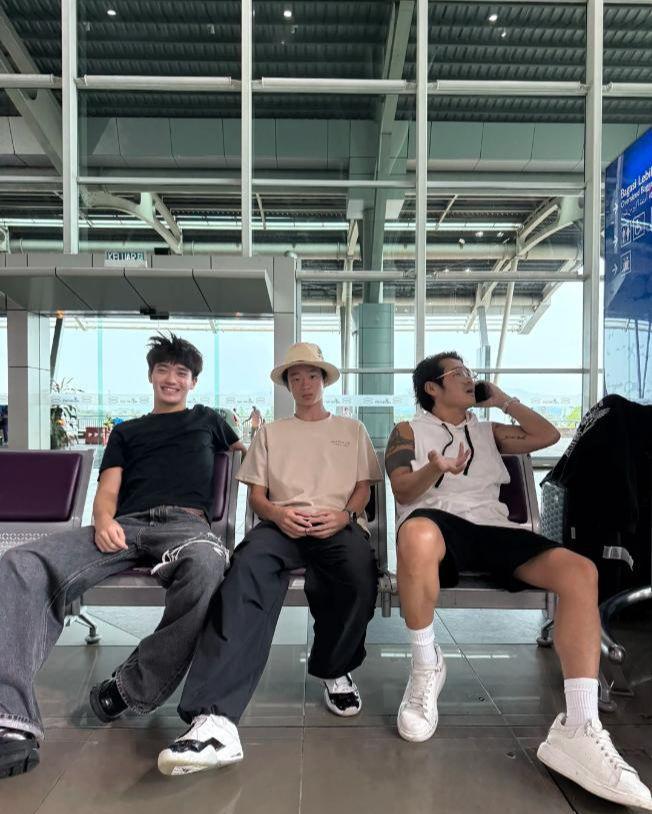 最有意思的是,这次“娃圈聚会”还惊动了“家长代表”曹格。照片里曹格穿了件简单白色背心,随意坐在凳子上,一只手举着手机贴在耳边,另一只手故意插在裤兜里,假装接重要电话,摆姿势的认真劲儿比两个孩子还抢镜,活像个“戏精老爸”。再看夹在中间的杨阳洋,双手规规矩矩放在膝盖上,表情略显尴尬,嘴角紧紧抿着——毕竟在长辈面前,还是得端着“乖乖仔”的架子,哪敢像跟朋友在一起时那样放飞自我、咋咋呼呼。