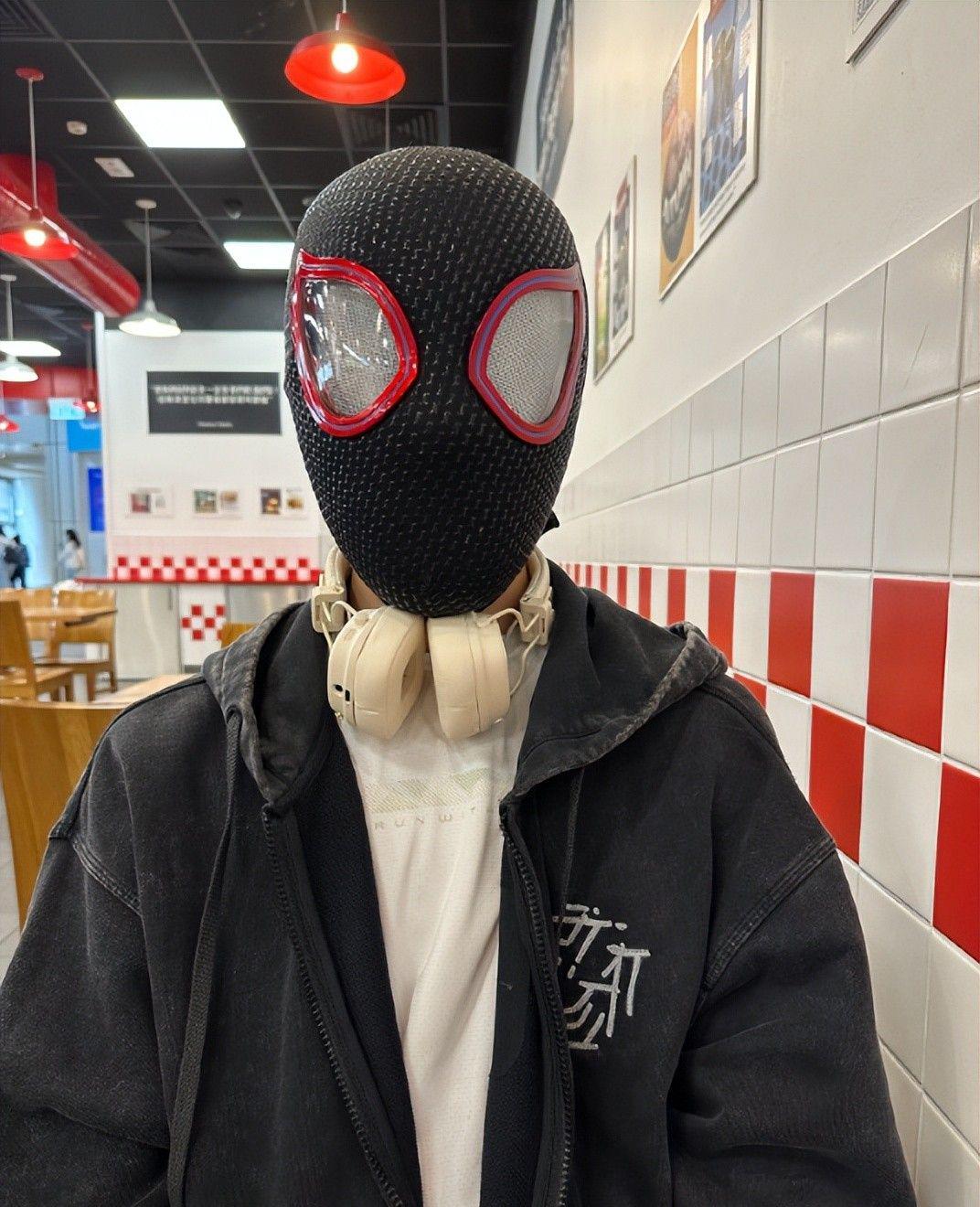 更难得的是,这俩从小不愁吃穿的富二代,聚会却完全不走“奢华路线”。他们没去什么装修精致的高档餐厅,就找了家藏在老巷子里的街边小饭馆,店里摆着几张老旧木桌,墙上还贴着泛黄的菜单。俩人点了一份番茄炒蛋、一盘炒时蔬,再加两碗叉烧饭,吃得津津有味,筷子扒拉米饭的速度都快赶上比赛了。杨阳洋穿的那件蓝色外套,袖口都洗得发白了,头上的棒球帽边缘也磨出了毛边,但这丝毫不影响他们的快乐——不知道从哪儿翻出两顶搞怪头套,一个扮成卡通小熊,一个扮成奥特曼,在饭馆里追着打闹,笑得差点把桌子掀翻。这才是朋友聚会的正确打开方式嘛:吃什么、在哪吃根本不重要,重要的是跟谁一起疯、一起闹!