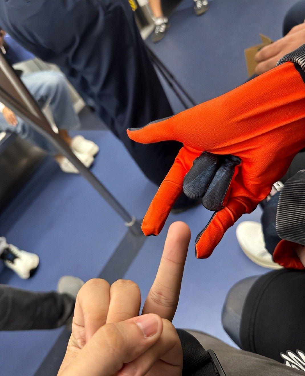 但只要一到费曼面前,杨阳洋的“偶像包袱”就碎得连渣都不剩了。有张俩人在地铁上的合照堪称“放飞实录”:他歪着脑袋,一只眼睛使劲眯着,另一只眼睛瞪得溜圆,还故意把舌头吐出来一点,嘴角都快咧到耳根了,那股子没心没肺的劲儿,跟在曹格面前拘谨得像小学生的模样,简直判若两人。果然啊,只有在最要好的朋友面前,人才敢毫无保留地暴露最真实、最幼稚的自己!