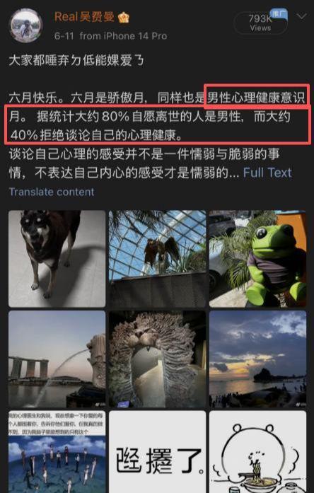 当然,玩笑归玩笑,费曼的状态确实让人有点心疼又担心。跟杨阳洋、Joe那种浑身散发着朝气的阳光模样不同,他身上总带着一种淡淡的疏离感,给人一种心事重重的感觉。熟悉他的粉丝都知道,之前他还在社交平台上分享过关于“男性心理健康”的文章,字里行间都透露出对情绪管理的关注,不难看出这个正处在青春期的男孩,可能正承受着不为人知的压力。毕竟青春期本就是敏感脆弱的阶段,再加上他从小就活在公众视野里,压力更是比普通孩子多了好几倍。