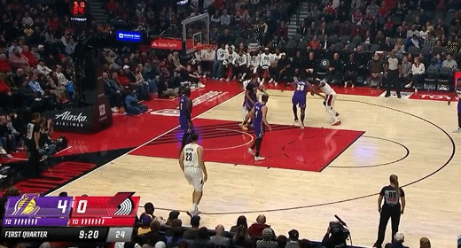 比赛开场近3分钟,开拓者依靠霍勒迪打破得分荒,但湖人迅速调整状态。首节阿夫迪亚为开拓者砍下11分,艾顿则拿到8分,首节战罢开拓者33-24领先。第二节开拓者一度将分差扩大至13分,但八村垒连续快下反击暴扣,带领湖人追分。半场结束时,开拓者仅以53-52领先1分。