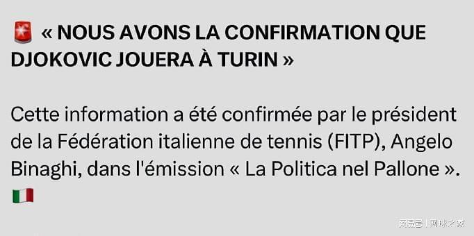 我们首先来关注一条有关德约科维奇的消息。北京时间昨天,意大利网协主席比纳吉在接受采访时透露,七冠王德约科维奇今年或将重返都灵,参加年终总决赛。此前,德约科维奇在美网之后曾表示,年终总决赛并不在自己的计划赛程之内。本周,他将出战由家族运营的ATP250雅典站比赛,目前尚未对是否重返都灵做出明确表态。您认为他会最终参加年终总决赛吗?