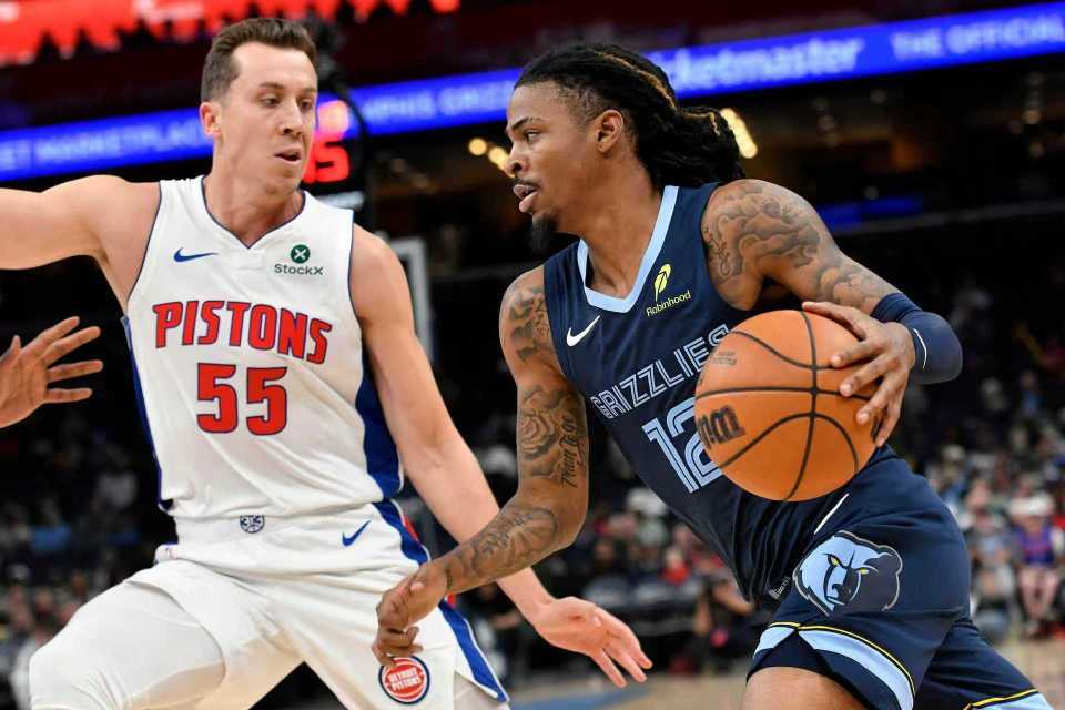北京时间11月4日,NBA常规赛迎来一场焦点对决,孟菲斯灰熊坐镇主场迎战底特律活塞。本场比赛最大看点莫过于灰熊核心贾·莫兰特解禁复出,这位全明星后卫此前因禁赛缺席一场。尽管莫兰特贡献18分6篮板10助攻的三双数据,但灰熊仍以106-114不敌活塞,遭遇三连败的同时目送对手取得三连胜。