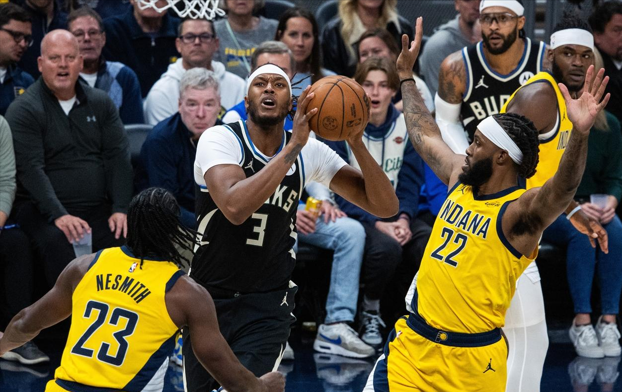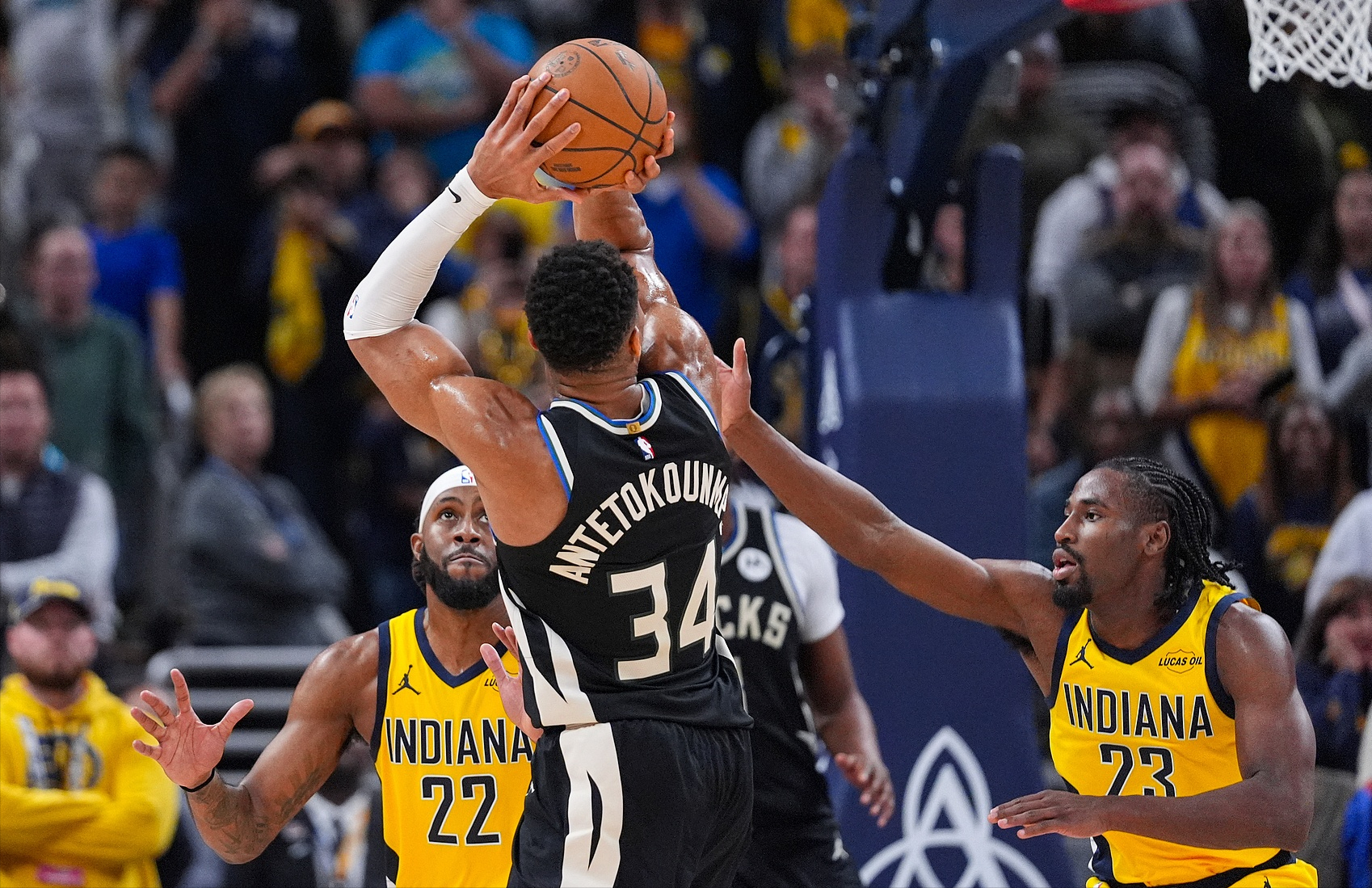 比赛最后14.5秒,步行者顽强扳平比分,将压力全部抛给了雄鹿。面对内史密斯的贴身防守和西亚卡姆的包夹威胁,字母哥没有选择强行突破,而是用一记后仰跳投完成终结。这一动作与诺维茨基的“金鸡独立”如出一辙,球进灯亮,绝杀对手,没有给步行者留下任何反击的机会。