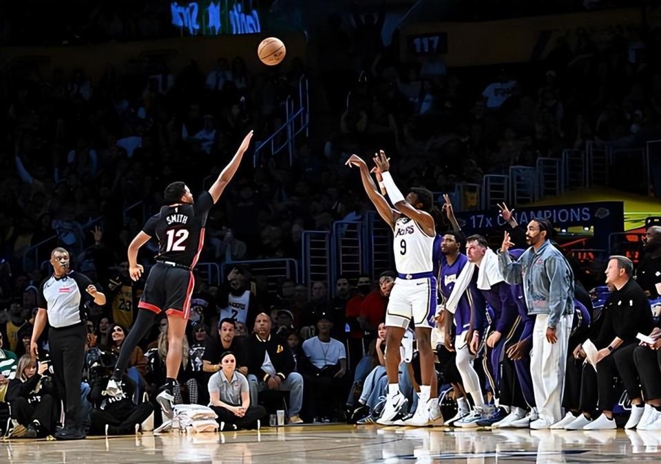 在最近一场NBA常规赛中,主场作战的洛杉矶湖人队以130比120力克迈阿密热火,豪取三连胜。此役过后,湖人的战绩提升至5胜2负,稳居西部第三;而热火则遭遇两连败,战绩下滑至3胜3负,排名跌至东部第六。赛后,湖人的两大后场核心卢卡-东契奇(Luka Doncic)和奥斯汀-里夫斯(Austin Reaves)均对在本场比赛中获得不少出场时间的布朗尼-詹姆斯(Bronny James)的表现给予了高度评价。