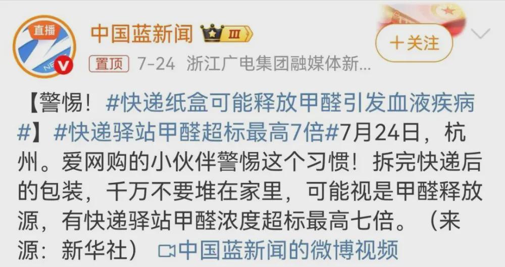 新华社最新调查显示,部分商家为压缩成本,在快递包装中大量使用劣质胶带、塑料和再生纸箱。记者对5家快递驿站进行实地检测发现,在站内停留仅数分钟,甲醛检测仪数值便突破国家标准,部分区域浓度甚至达到国标的7倍以上。这种刺鼻气味在密闭环境中尤为明显,即便佩戴口罩也难以完全隔绝。