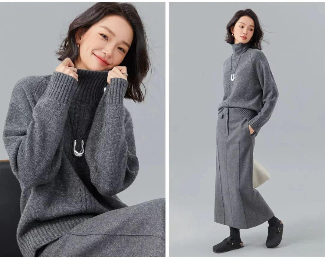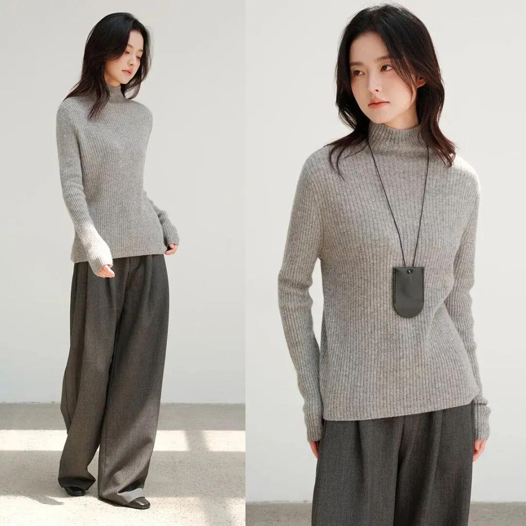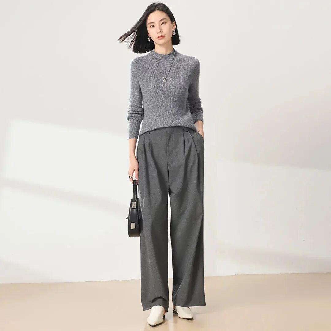 如果你想更干练一点,不妨选一件修身灰色毛衣搭配灰色西装裤,再搭上一双高跟鞋或乐福鞋,瞬间将专业与优雅的气场拉满。这样的穿搭,无论是参加会议还是日常办公,都能让你成为焦点。