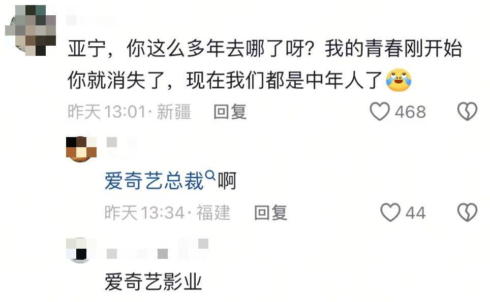 据说亚宁在离开央视之后,就去到了影视行业,似乎是爱奇艺影业总裁。