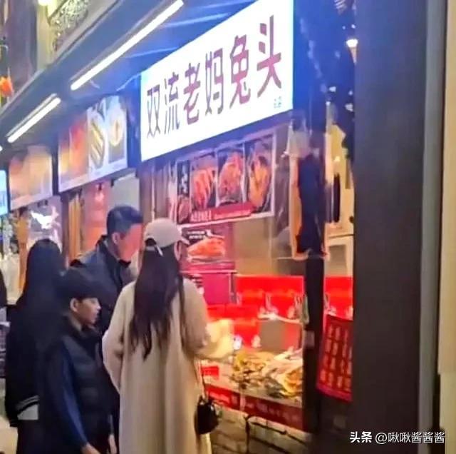 在宽窄巷子,一家人围在兔头店前,箖箖兴致勃勃地听爸爸汪小菲介绍当地美食,画面充满了家庭的温馨与欢乐。
