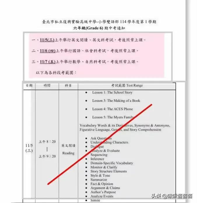 台媒新闻标题直指要害:汪小菲带子女逛成都兔头摊,台网友疑惑:要期中考了耶。有当地网友更是公布了小玥儿学校的课程表,显示从11月5日开始,小玥儿将开始3天的期中考试。