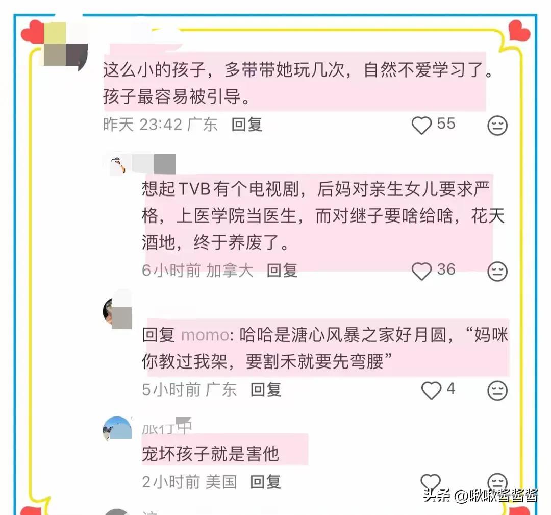 接着,不少人开始质疑马筱梅为了流量不顾孩子的学业,明知要期中考试了还带孩子出来玩。他们认为,无原则的宠爱其实就是害了孩子,长此以往,孩子就养废了。
