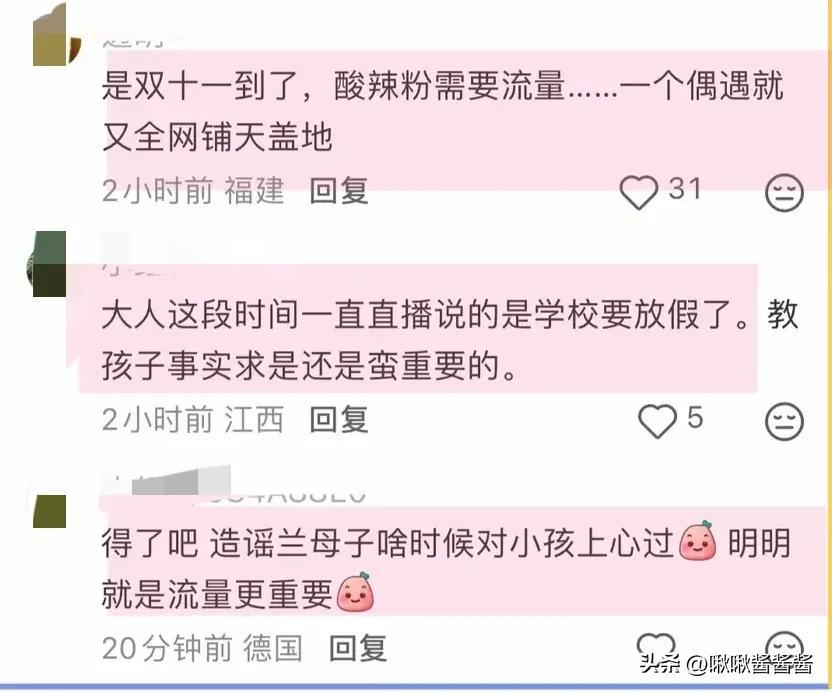 评论区里的网友们义愤填膺,马筱梅只不过带自己的孩子逛逛街,就成了别有用心的后妈。更有意思的是,他们一家光顾了兔头店,在台媒笔下反而成了在内涵具俊晔。