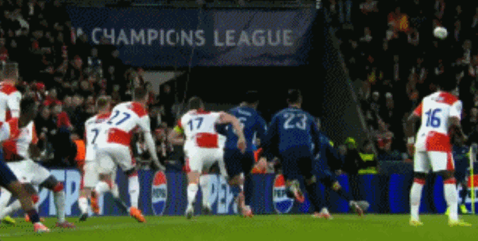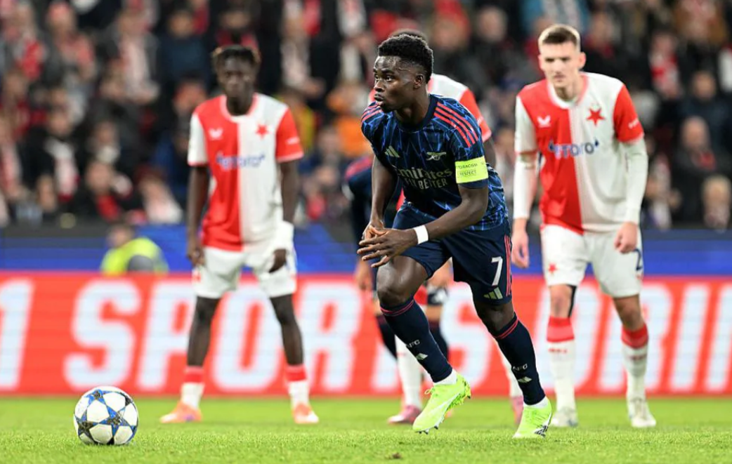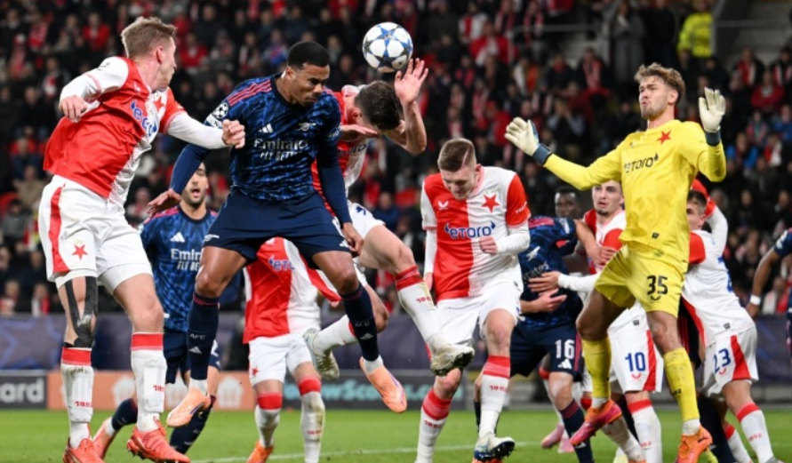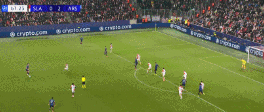 第29分钟,加布里埃尔头球攻门高出球门,随后VAR介入判定布拉格斯拉维亚球员普罗沃德手球在先,阿森纳获得点球。萨卡主罚命中,帮助球队1-0领先。这个进球也让萨卡成为阿森纳队史首位连续四个欧冠客场比赛都取得进球的球员。