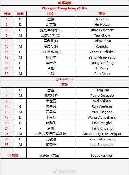 替补席上,成都蓉城同样人才济济:14号冉伟枫、3号唐鑫、4号德尔加多、7号韦世豪、15号严鼎皓、17号王东升、18号韩鹏飞、24号唐创、25号木热合买提江、26号元敏诚、58号廖荣祥随时准备登场,为球队贡献力量。