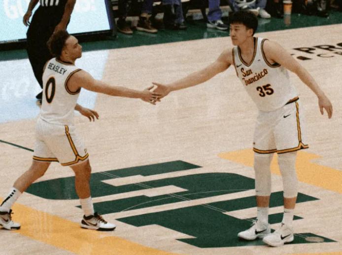 如今在旧金山大学,王俊杰的战术地位愈发重要。面对实力较弱的对手时,他往往能在短时间内高效砍分,帮助球队迅速拉开分差。本场比赛主教练在分差扩大后便果断换下王俊杰,让替补阵容获得锻炼机会——这种“核心球员待遇”足以说明他在球队中的价值。随着多名老队员离队,作为大学三年级生的王俊杰已成为球队资历最深的球员之一,新赛季他需要承担更多责任,这也为他提供了进一步证明自己的舞台。
