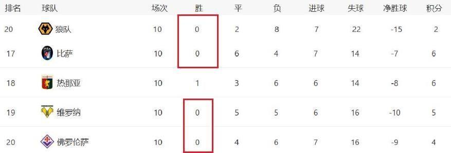 随着这两支球队的胜利,五大联赛未尝胜绩的球队缩减至4支。英超狼队以2平8负的战绩稳坐副班长位置,成为目前五大联赛中输球场次最多的球队。更令人震惊的是,狼队创造了英超历史耻辱纪录——连续两个赛季开局前10轮不胜。上赛季他们3平7负勉强保级,本赛季战绩进一步下滑至2平8负,主帅佩雷拉面临巨大下课压力。