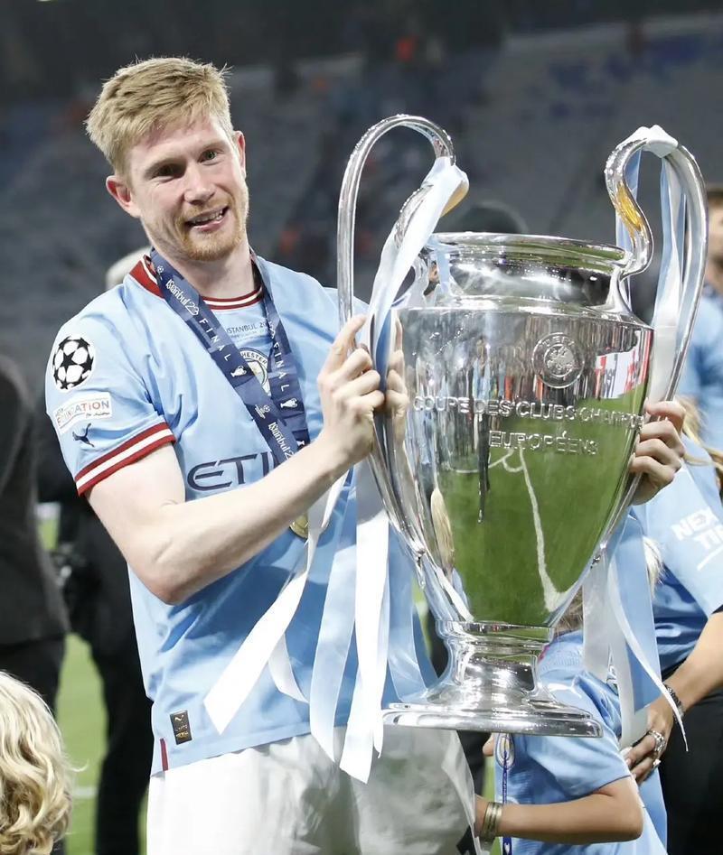 2015年夏天,曼城以7600万创队史纪录的身价签下了德布劳内。这位比利时中场大师也开启了他辉煌的曼城生涯。从2015到2025,德布劳内在10个赛季里为曼城出战了422场各项比赛,砍下108球177助攻的惊艳数据。他率队拿到了6个英超、5个英联杯、2个英格兰足总杯、3个社区盾杯、1个欧冠、1个欧洲超级杯和1个世俱杯在内的19座冠军奖杯。他个人也分别2次荣膺英格兰最佳球员和PFA英格兰足球年度最佳球员殊荣。这些荣誉和成就,无疑是对他职业生涯的最好肯定。