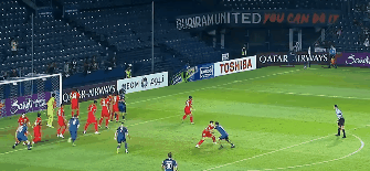 落后局面下,海港队展开反扑。第25分钟,王燊超接应前场任意球头球后蹭,武里南联门将埃瑟里奇在门线上将球挡出,海港队错失扳平良机。