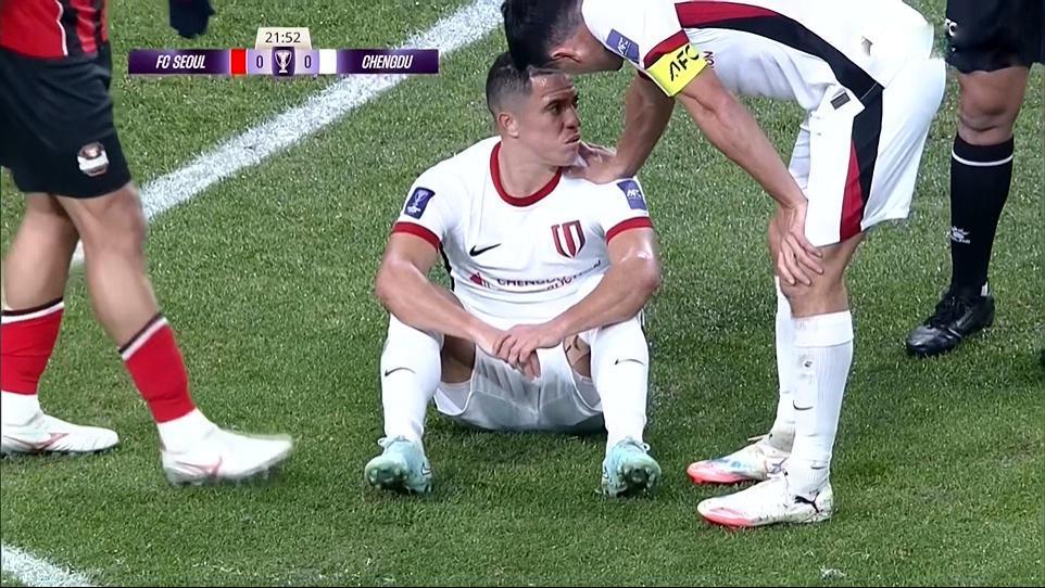 首尔FC开场后迅速占据主动,通过高位逼抢和快速反击制造威胁。蓉城则依靠费利佩的支点作用和罗慕洛的调度组织,逐渐稳住阵脚。然而第24分钟突发意外,罗慕洛因伤无法坚持比赛,被德尔加多替换下场。离场时这位巴西中场泪洒赛场,令全场动容。