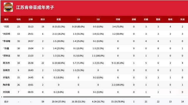 江苏队虽然顶住了半场的压力,但最终还是因实力不济,输给了浙江队。全队仅2人得分上双,蒋浩然空砍22分6篮板2助攻,闫实则有19分3篮板4助攻的表现。