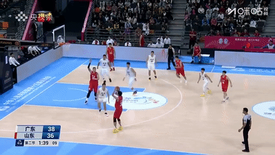 接下来,五上五下的二组再次上场,徐杰飚进关键三分+转换抛投,帮助广东队一度领先来到12分。山东队这边能打出来的成功战术配合不多,但好在他们有陶汉林和王岚嵚。陶汉林休息回来后继续在内线得吃得喝,疯狂制造杀伤。王岚嵚也终于找回得分手感,两回合一人独造6分。在王岚嵚和陶汉林的带领下,山东队一口气连追12分,将分差缩小来到2分。节末1分28秒,随着陶汉林面对焦泊乔凿进强硬上篮,山东队38-38扳平比分。