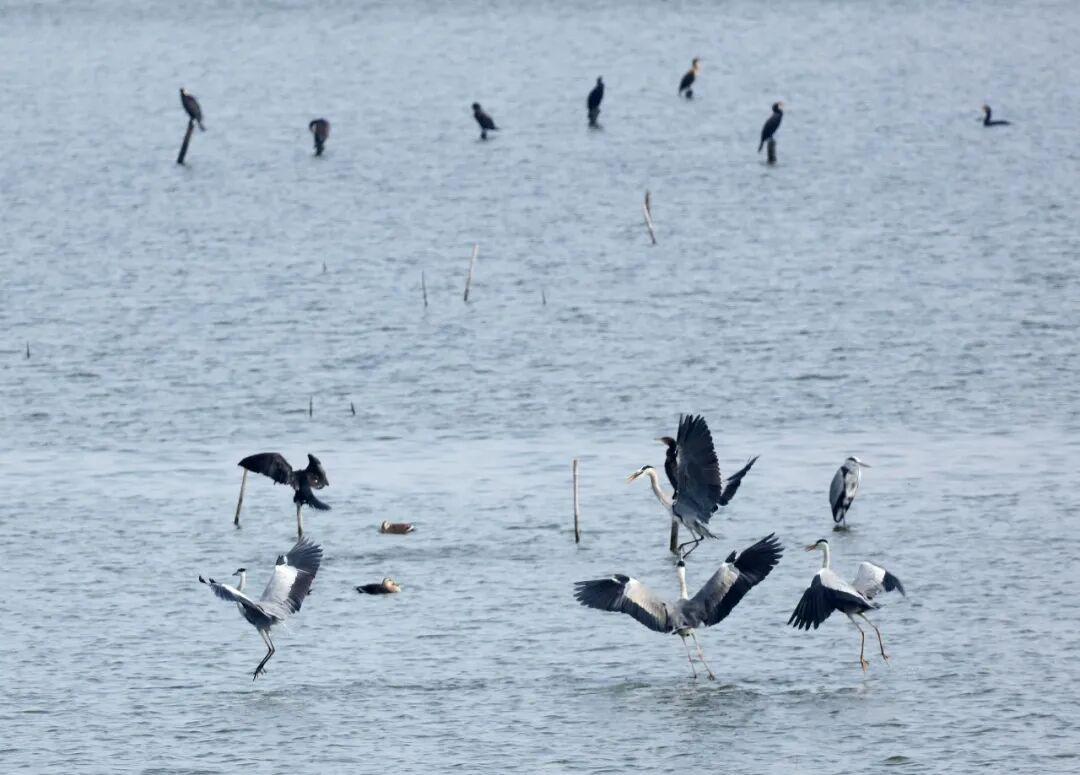 杭州钱塘大湾区湿地,无疑是杭州名副其实的“观鸟胜地”。据统计,该湿地已收录鸟类16目49科140余种,其中包含东方白鹳、黑脸琵鹭等20余种国家级保护动物。每年秋冬季节,成千上万的鸻鹬类、雁鸭类水鸟在此集结,形成壮观的“鸟浪”,吸引着无数观鸟爱好者前来观赏。