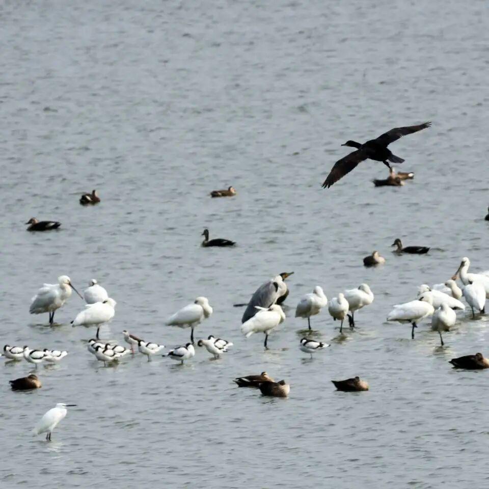 每年秋冬季节,这里都会成为众多候鸟迁徙途中的重要停歇站。今年也不例外,数十只白琵鹭、反嘴鹬以及大群的野鸭等候鸟,已经陆续飞抵此处,开始了它们在湿地的短暂停留与栖息。