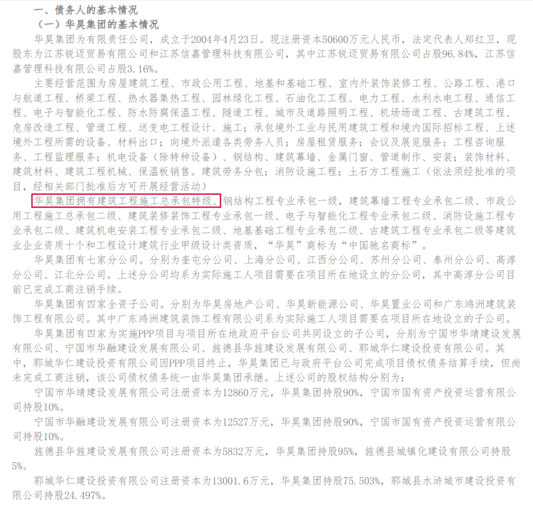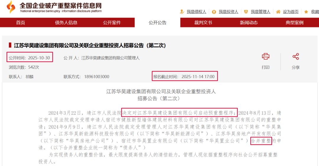 这两天,江苏华昊建设集团进行了二次招募重整投资人了。