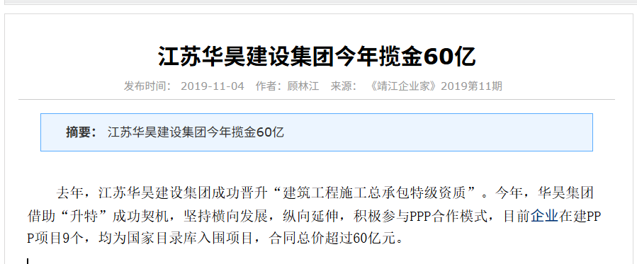 于是,华昊“准备早、动作快”,一头扎进了PPP的蓝海。到2019年左右,这家公司手里已经握着9个PPP项目,合同总价超过60亿,而且都入围了国家PPP项目库。