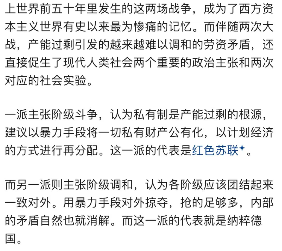 他没有直接从问题本身去谈,而是开始讲起了百年前的历史,主要是一战和二战。