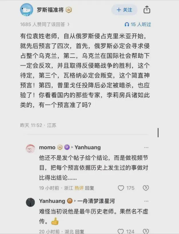 近日,某知识分享平台上一则热帖引发数十万网友围观与数千点赞。该帖称:一位袁姓历史教师自俄罗斯2014年侵占克里米亚以来,先后作出四次关于俄乌局势的预言,其中三次已得到验证。这一现象引发公众对历史经验与现实政治关联性的深度思考。