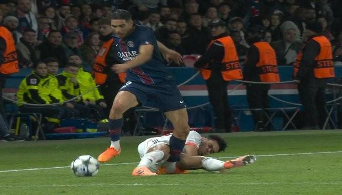 上半场补时阶段,场上局势紧张。路易斯-迪亚斯在一次防守中,从背后对阿什拉夫进行了飞铲,这一危险动作直接导致阿什拉夫痛苦倒地。裁判果断出示红牌,将路易斯-迪亚斯罚下场。但此时,所有人的目光都聚焦在了倒地的阿什拉夫身上。