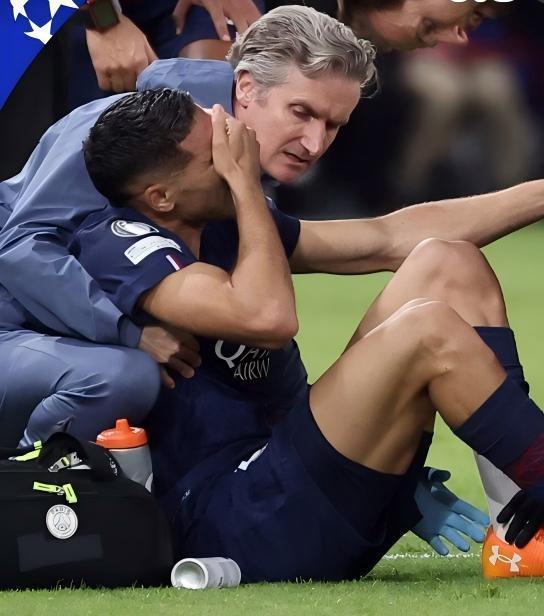 从直播画面中可以清晰看到,阿什拉夫受伤后无法自行站立,更别提走下球场了。他痛苦地捂着左脚脚踝,表情异常痛苦。随后,在队友帕乔和队医的搀扶下,阿什拉夫才缓缓离开了球场。