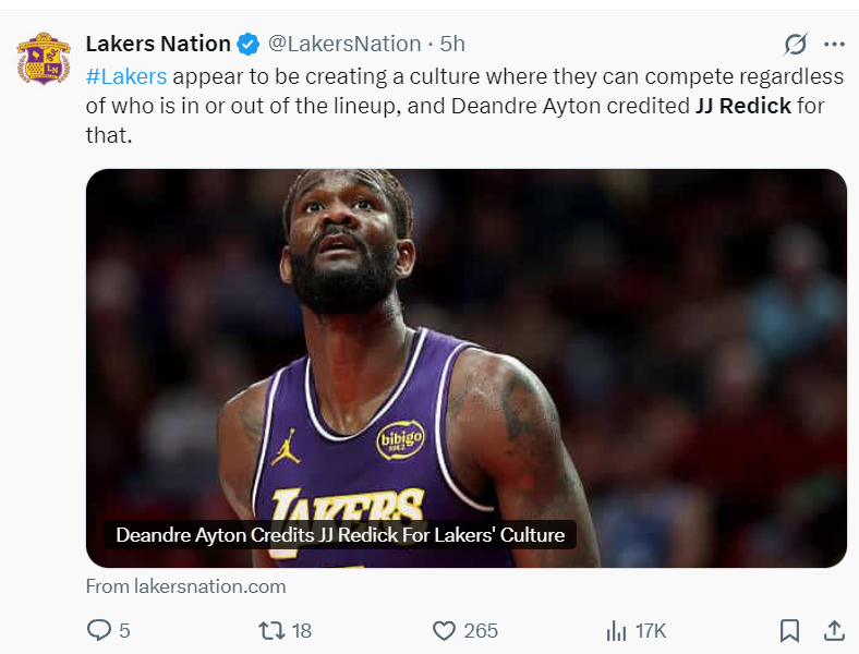 有湖人媒体指出,赢球的文化始于管理层,而雷迪克正是这种文化的践行者。