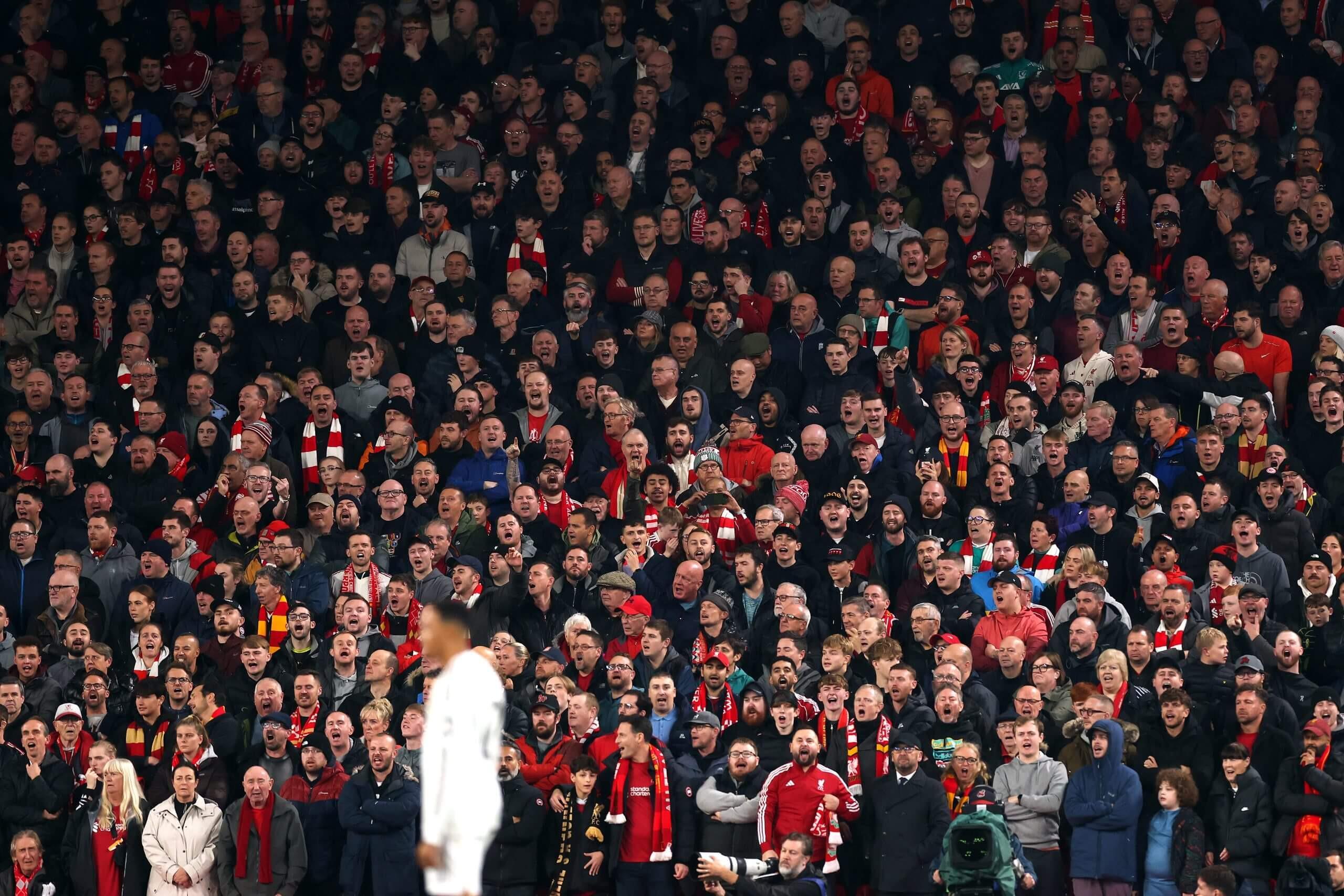 当亚历山大-阿诺德在开球前坐在皇马替补席上时,KOP看台响起了歌声。